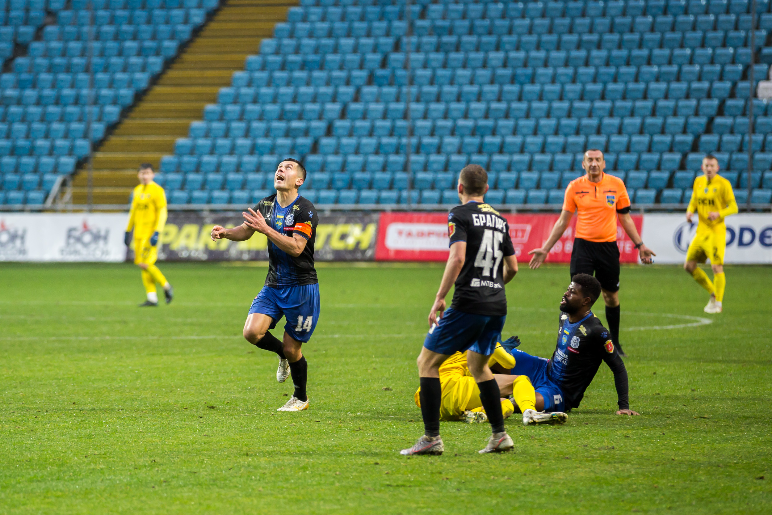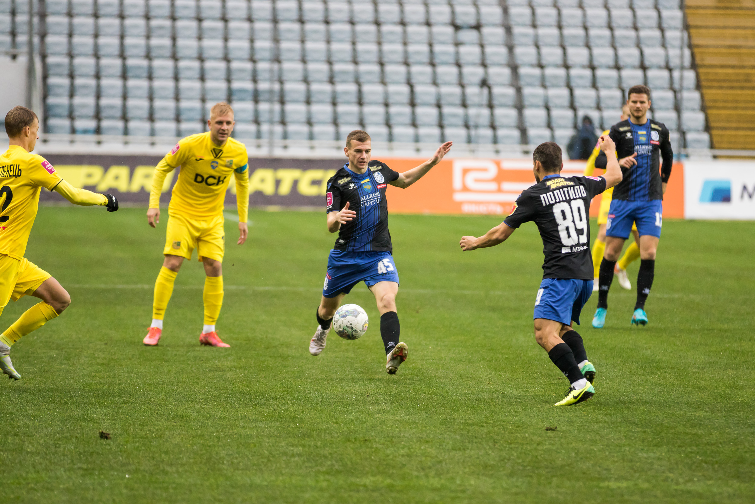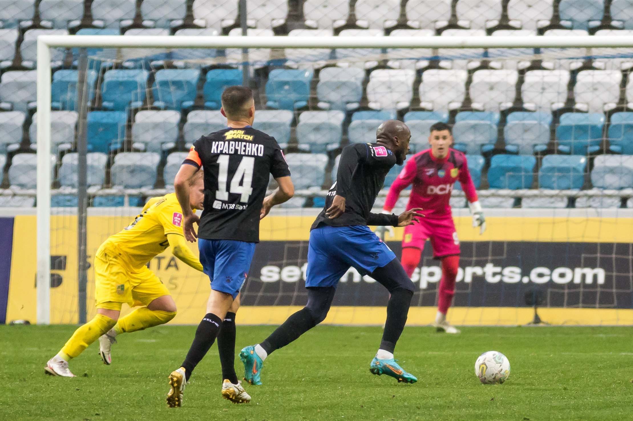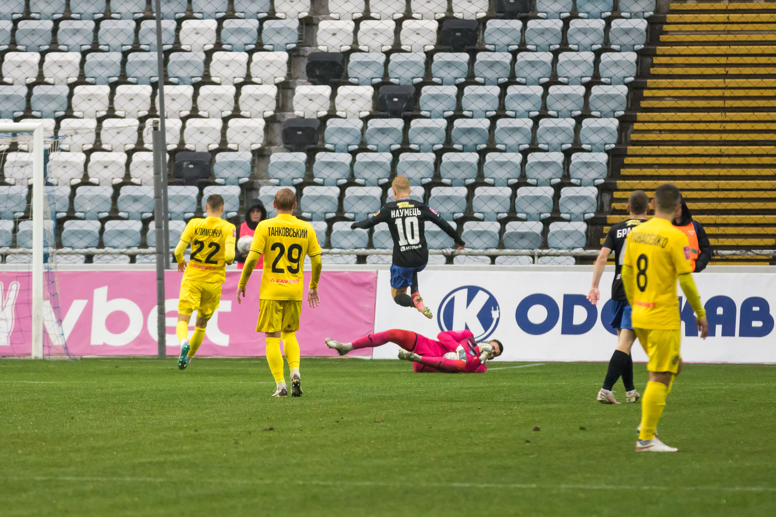 Початок першого тайму був за гостями, але після хвилини 20-ї моряки додали в швидкості і перевели гру на половину поля харків'ян. Наумець, двічі Юсов, Брагару (після передачі Юсова) могли відкривати рахунок.