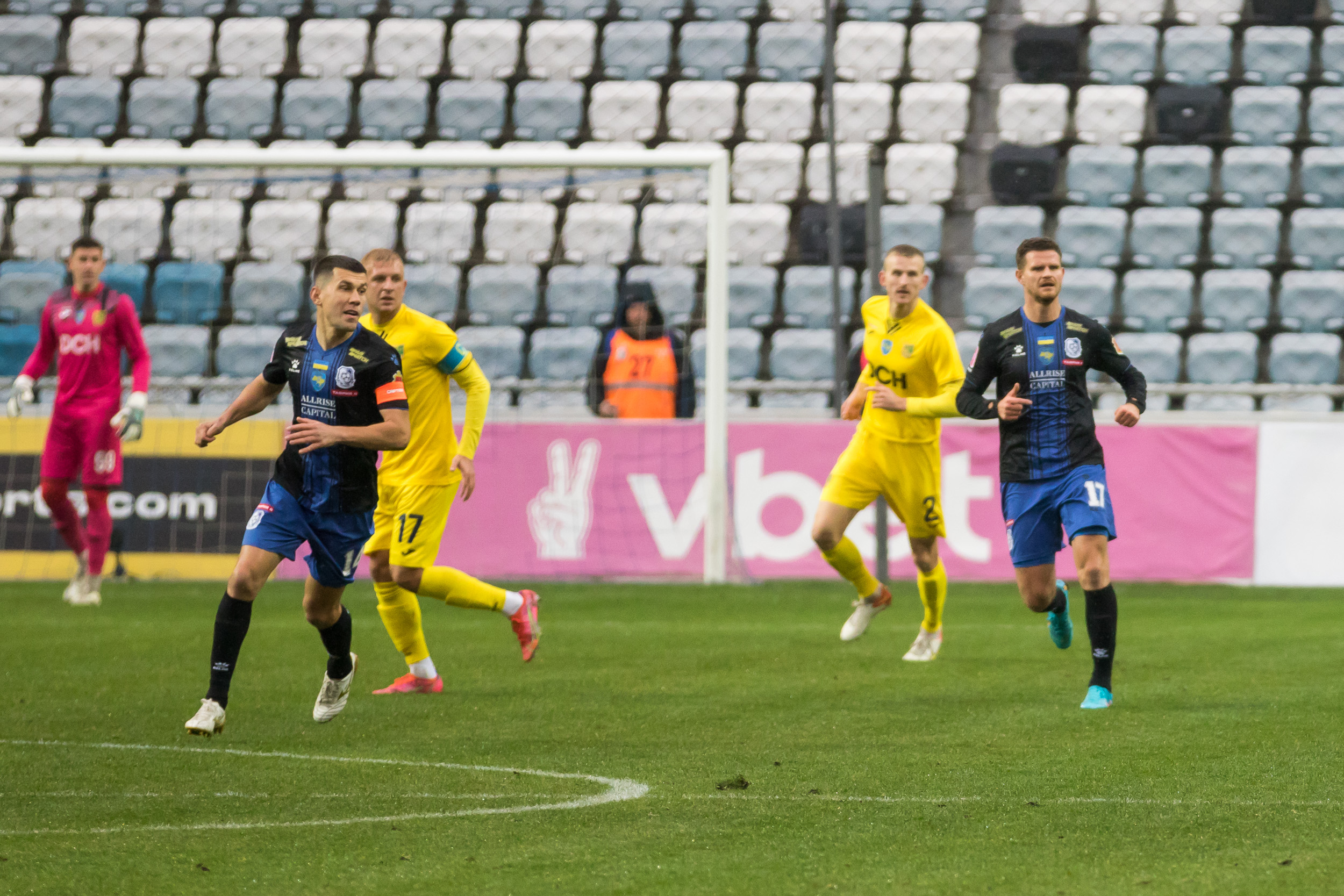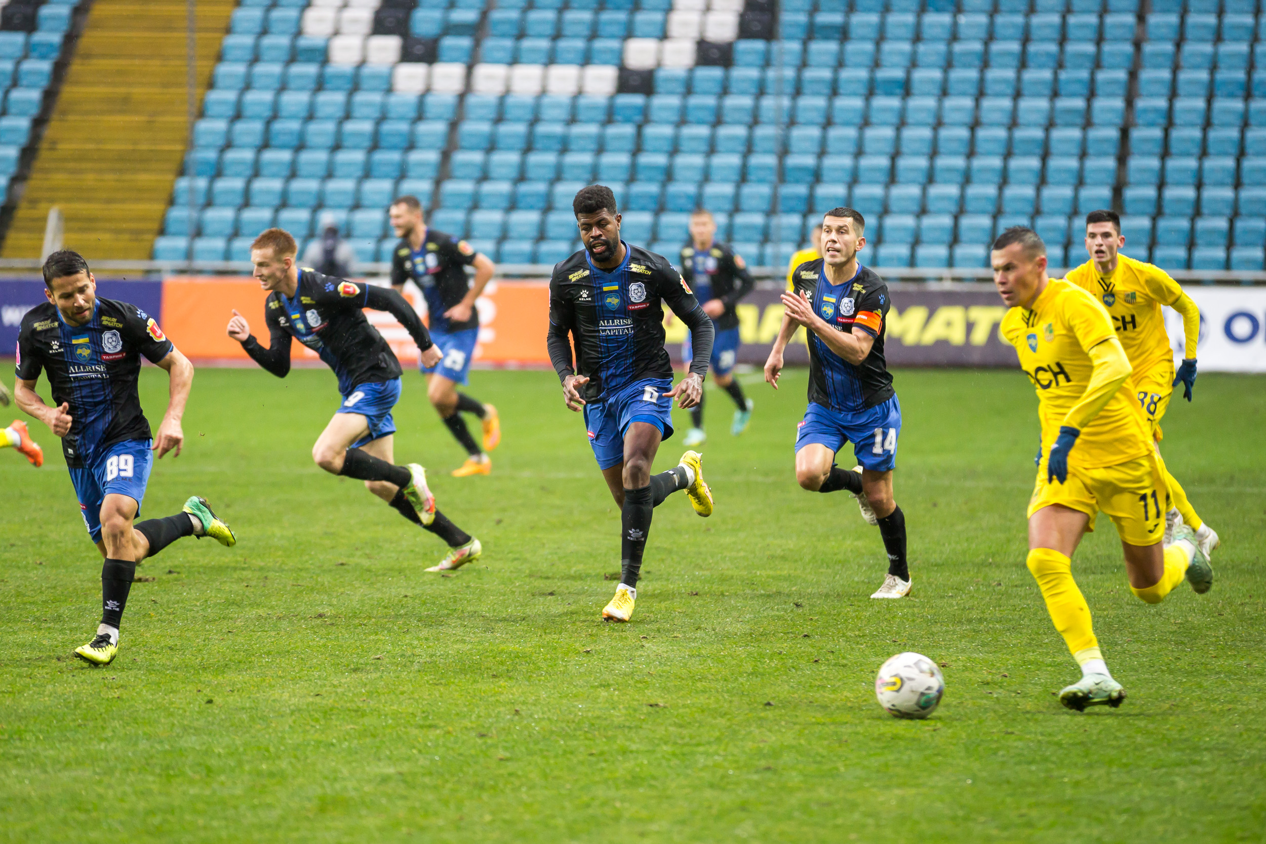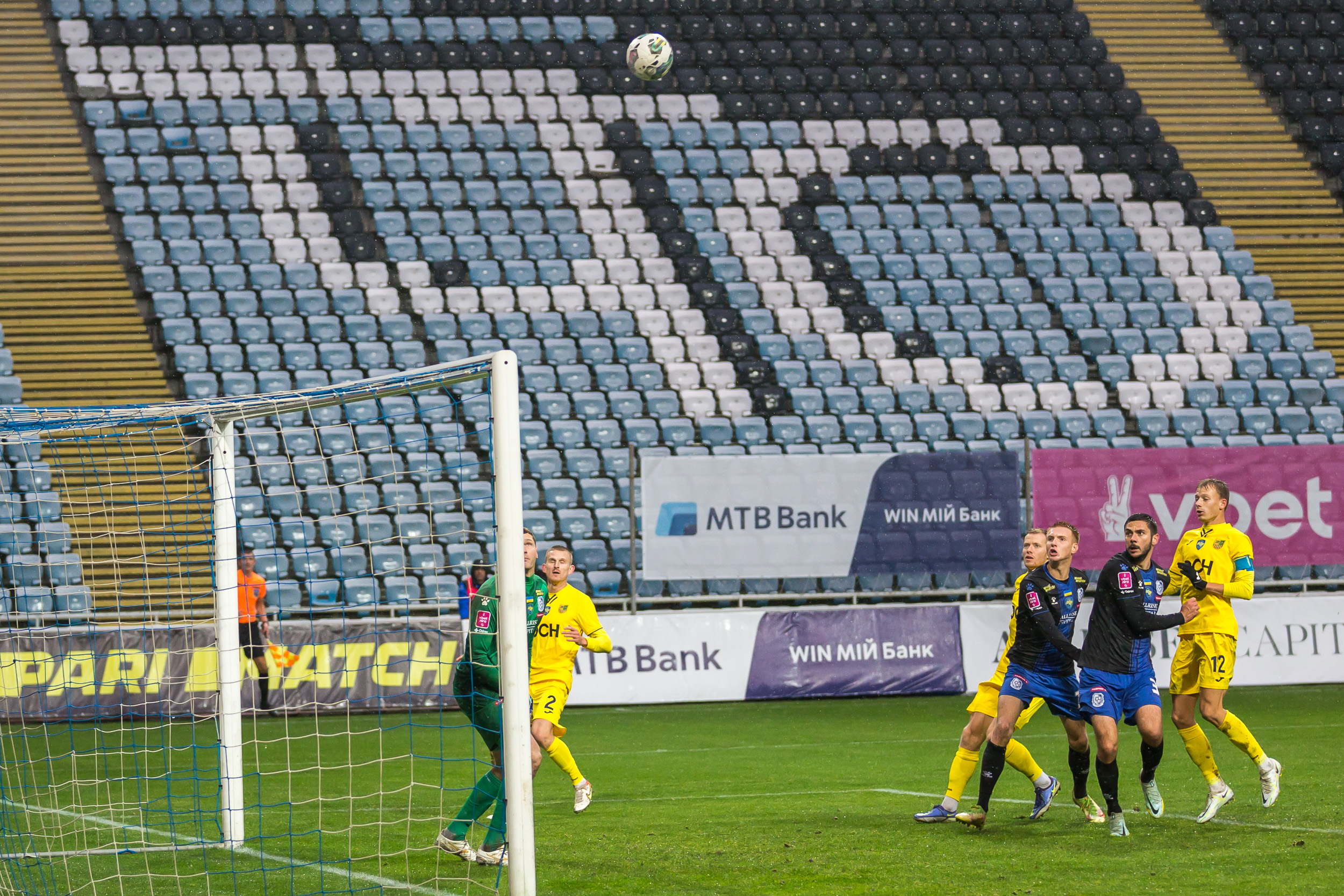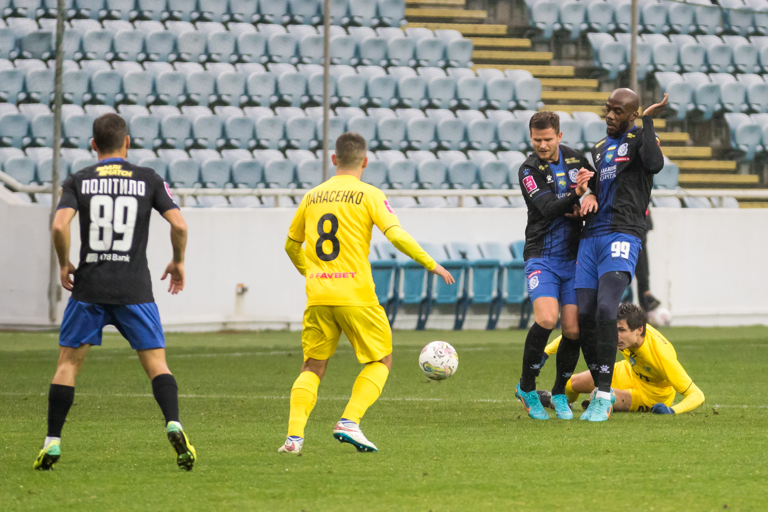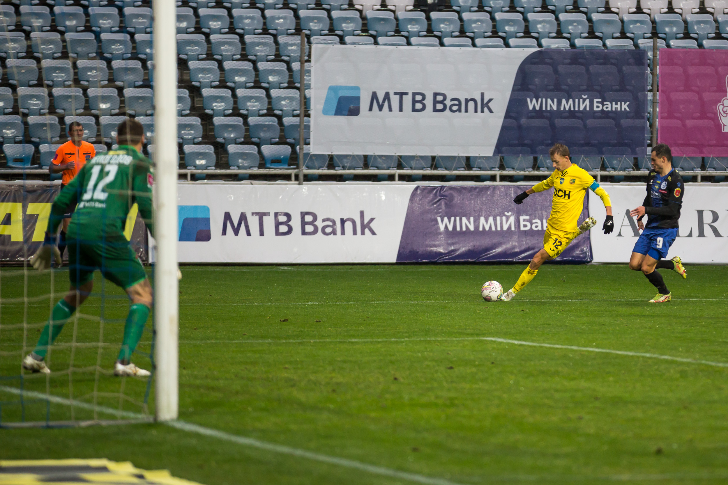 Початок першого тайму був за гостями, але після хвилини 20-ї моряки додали в швидкості і перевели гру на половину поля харків'ян. Наумець, двічі Юсов, Брагару (після передачі Юсова) могли відкривати рахунок.