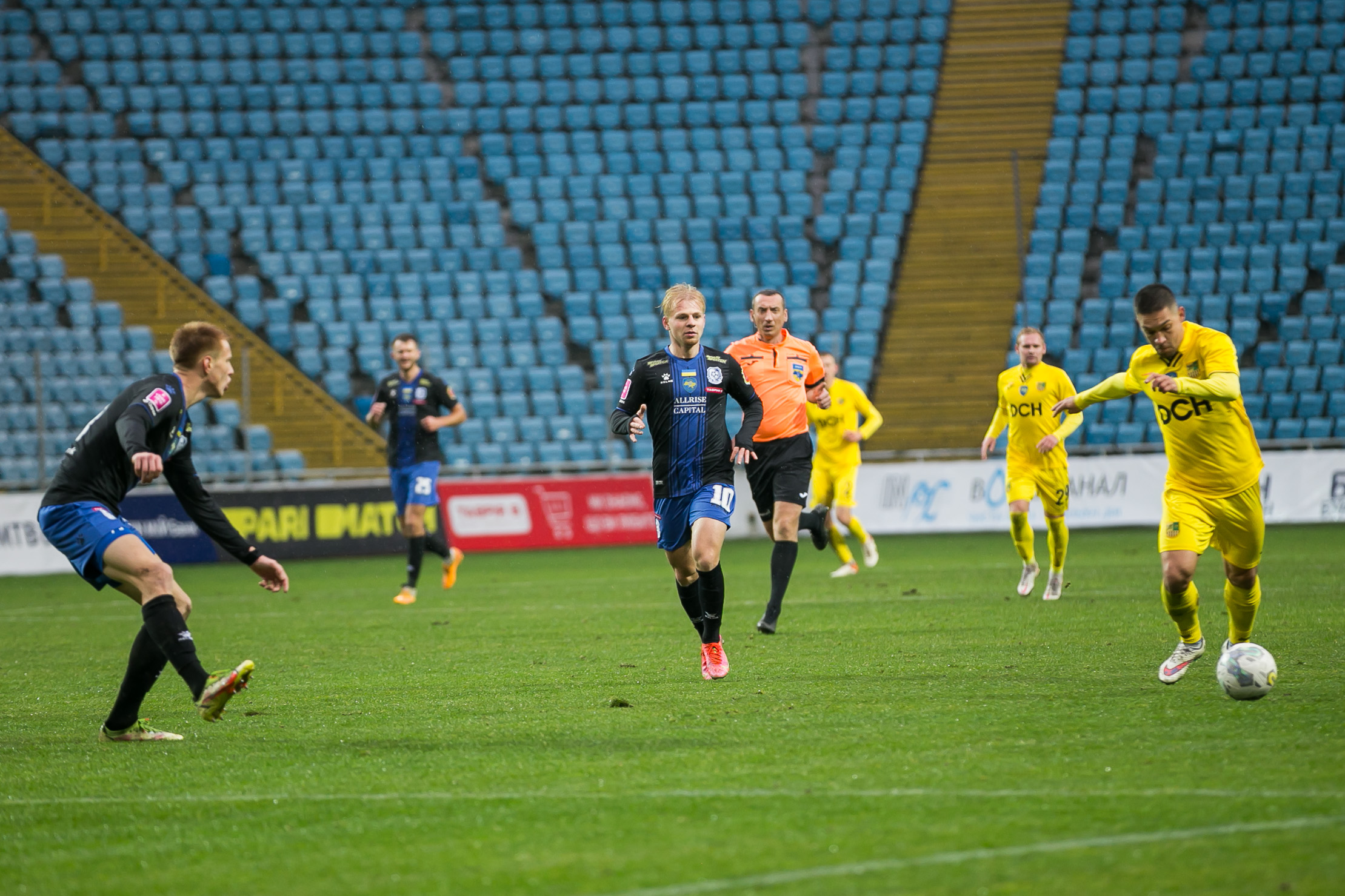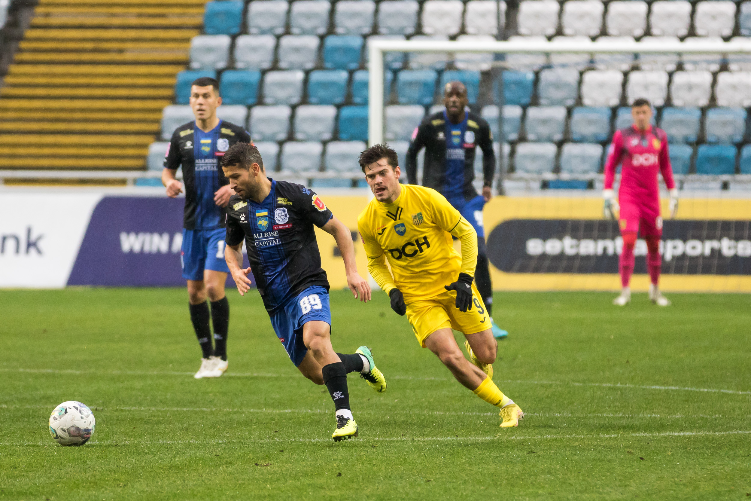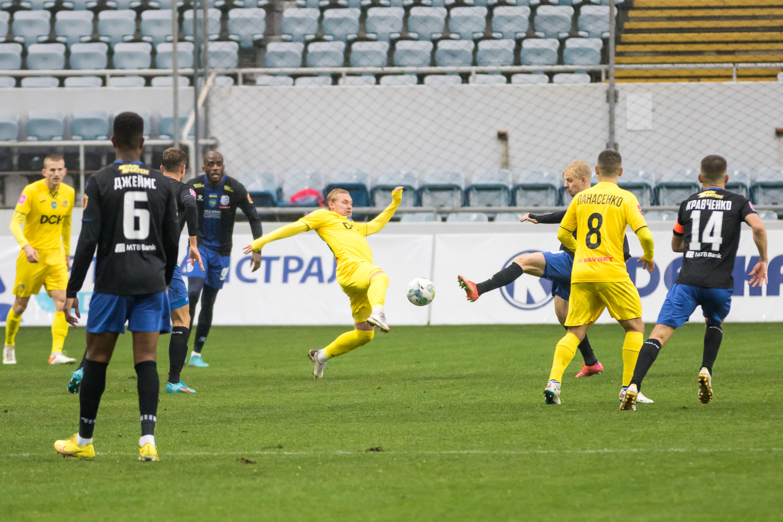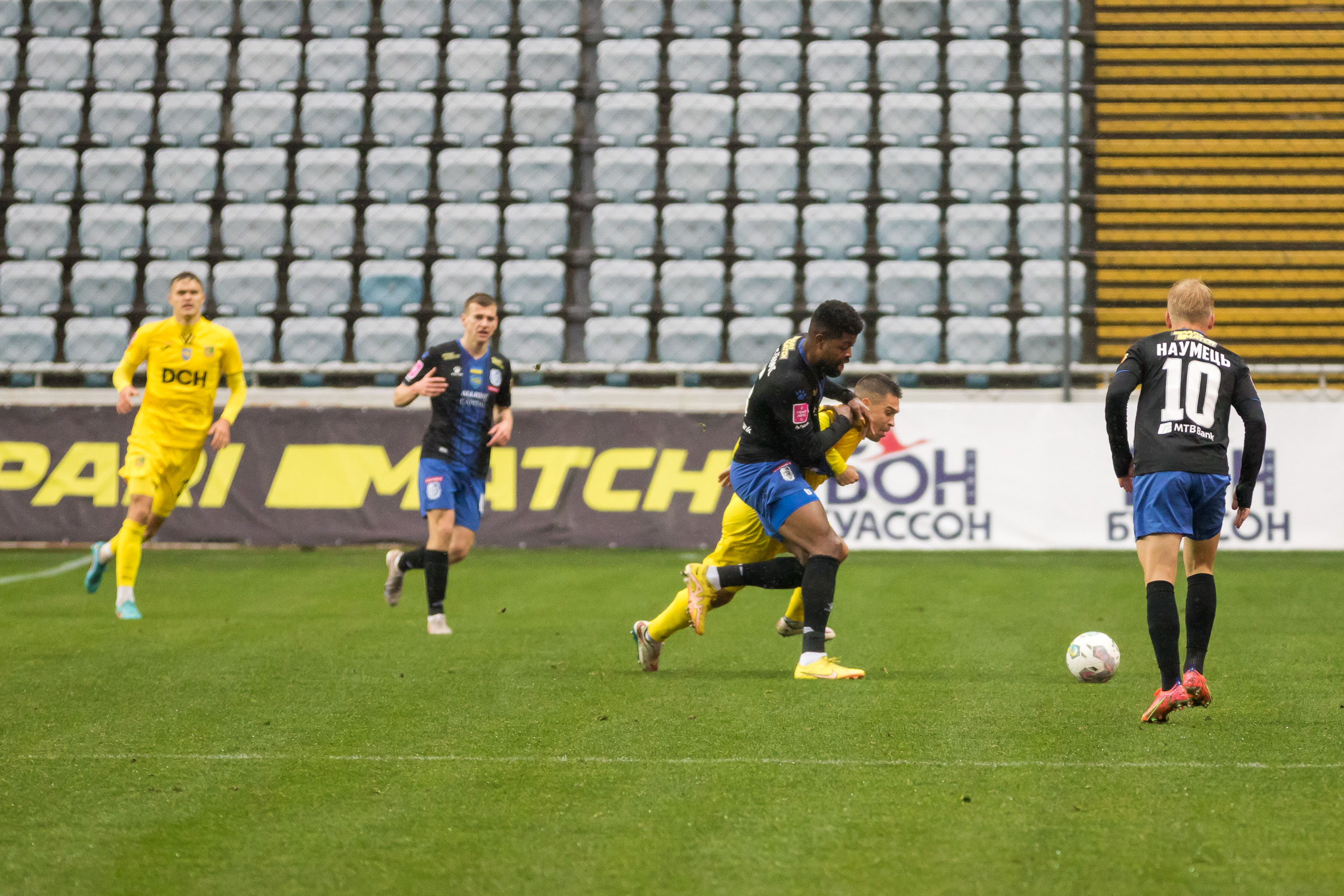 Початок першого тайму був за гостями, але після хвилини 20-ї моряки додали в швидкості і перевели гру на половину поля харків'ян. Наумець, двічі Юсов, Брагару (після передачі Юсова) могли відкривати рахунок.