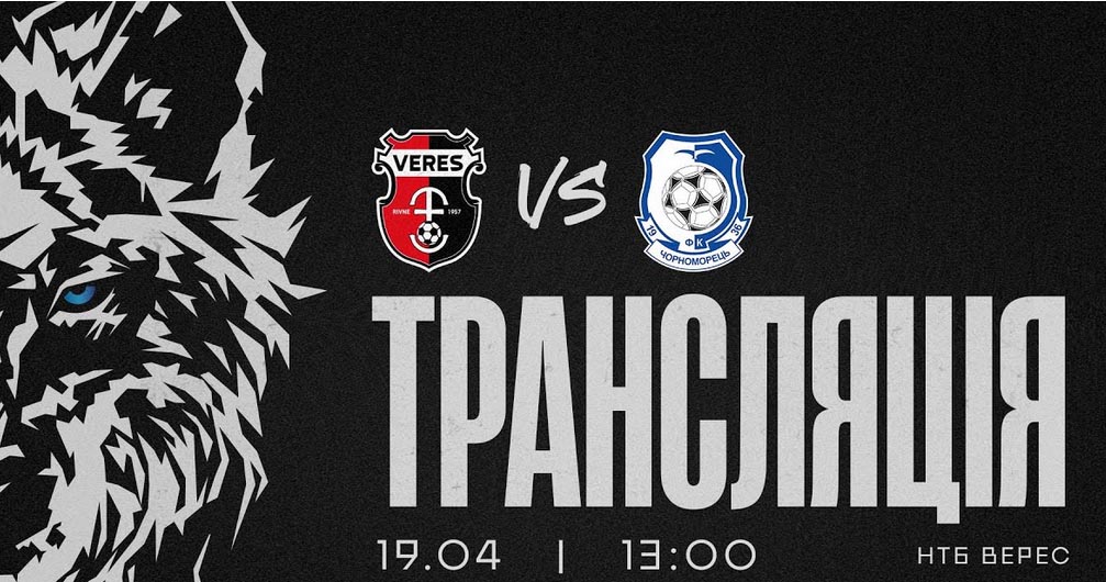 19 квітня відбудеться матч 25 туру чемпіонату юнацьких команд. «Верес» (Рівне) буде приймати "Чорноморець" на своїй НТБ. Гра розпочнеться о 13-00. Пряма відеотрансляція запланована на YouTube каналі VERES TV.