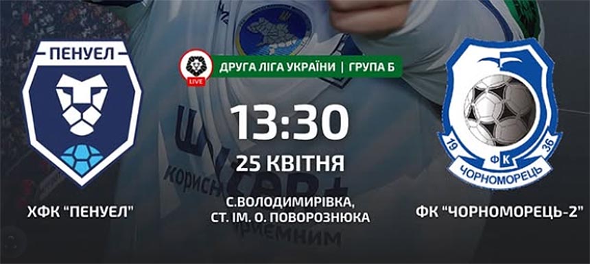25 квітня відбудеться матч 28 туру чемпіонату України серед команд другої ліги (група «Б») «Пенуел» (Кривий Ріг) - «Чорноморець-2». Гра пройде на стадіоні імені Олександра Поворознюка у Володимирівці (Кіровоградська область). Початок о 13-30. Заплановано пряму відеотрансляцію матчу.