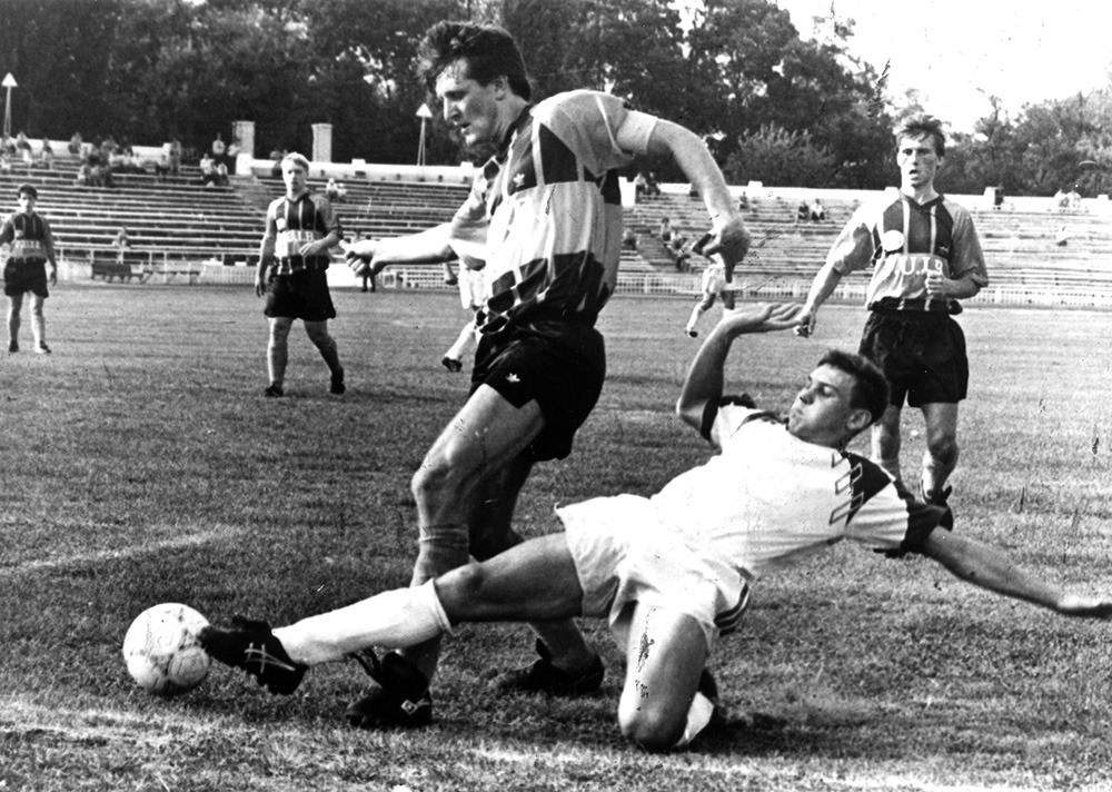 1992 рік - "Чорноморець" - "Шахтар" Донецьк - 1:2 (0:1). Чемпіонат України. Одеса. Центральний стадіон ЧМП. Голи: С. Гусєв (63) - Є. Драгунов (6-пенальті), С. Ателькін (73).