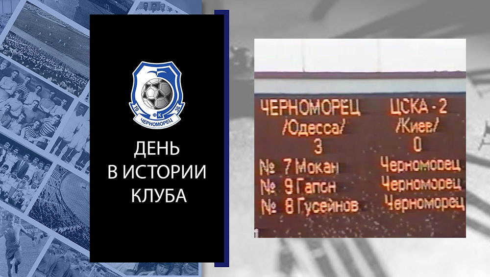1998 рік - "Чорноморець" - ЦСКА-2 Київ - 3:0 (1:0). Чемпіонат України. Одеса. Центральний стадіон ЧМП. Голи: В. Мокан (9), В. Гапон (64), Т. Гусейнов (84).
