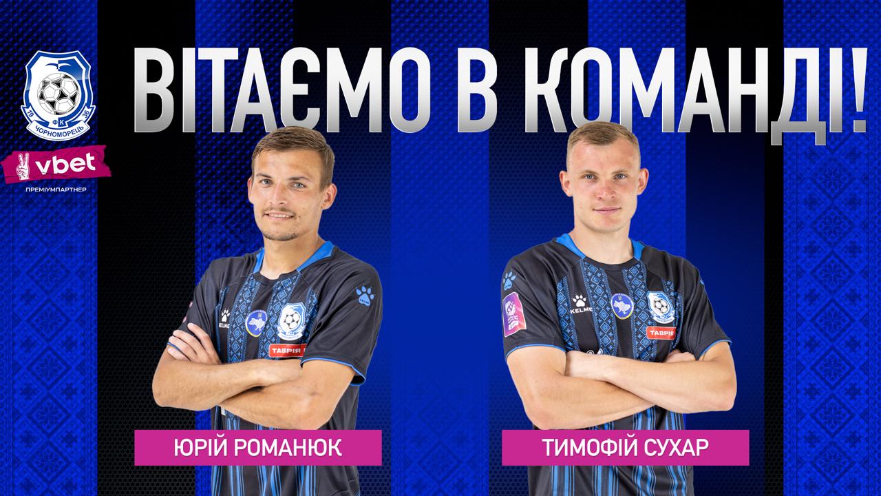 Склад команди «моряків» поповнили два футболісти: Юрій РОМАНЮК та Тимофій СУХАР.