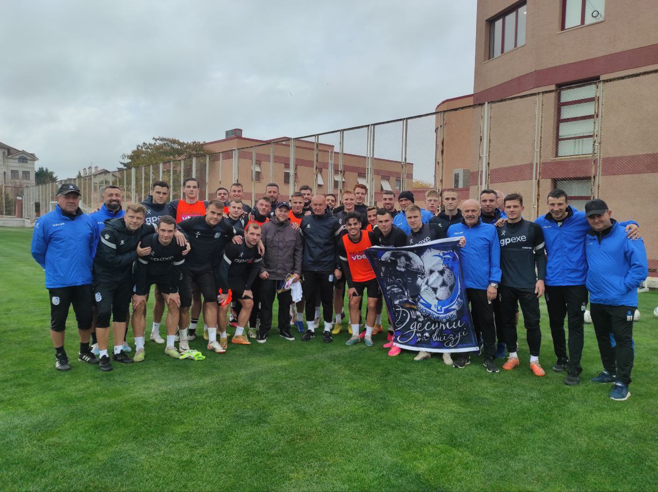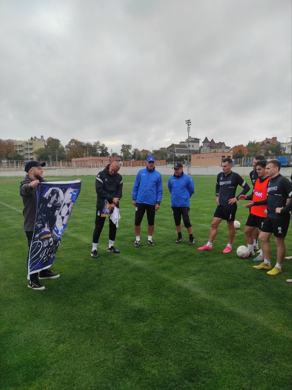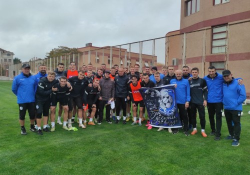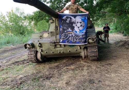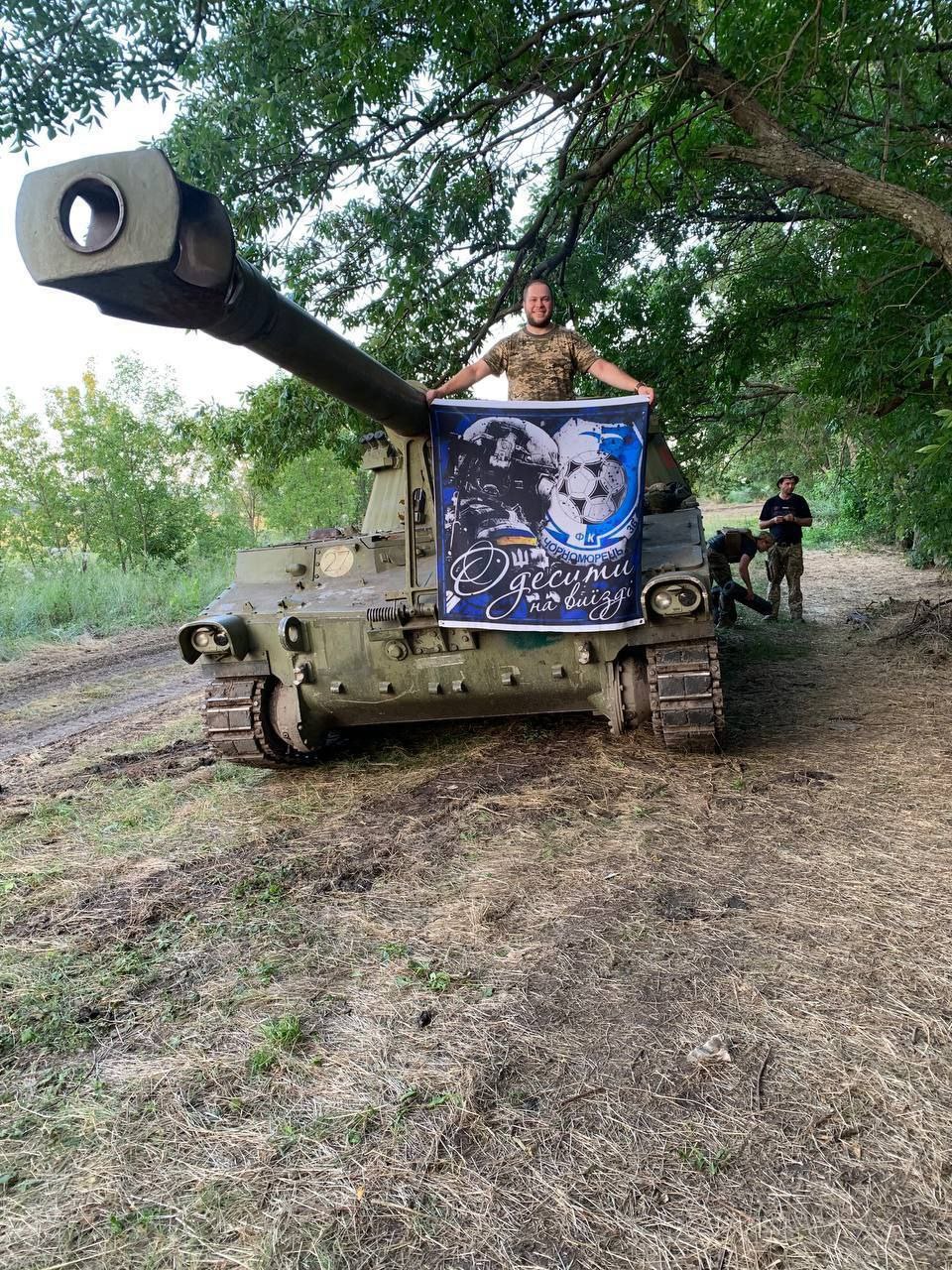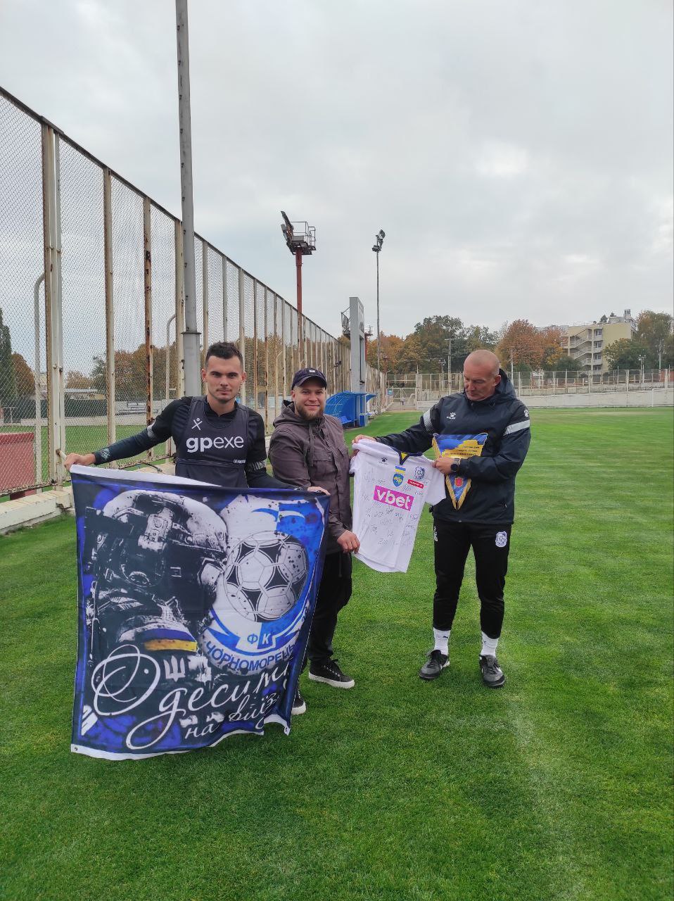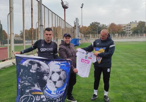 Футбольний клуб "Чорноморець" отримав прапор з поля бою від своїх відданих фанів. Дякуємо всім нашим захисникам, що боронять країну. За вашу сміливість, за те, що маємо можливість грати у футбол.