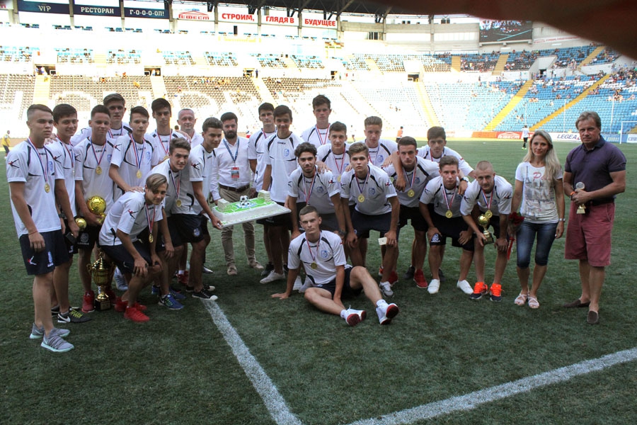 В перерыве матча «Черноморец» - «Сталь» (0:1) генеральный директор «моряков» Анатолий Мисюра поздравил выпускной класс нашей Академии. Футболисты 2000 года рождения завоевали золото турнира «International Young School Football Invitational 2017», проходившего в Шанхае. На групповом этапе они одержали три победы с общим счетом – 22-0! В полуфинале одолели одну из сильнейших юношеских команд Китая, прошлогоднего чемпиона страны по своему возрасту – «Цуйнянь Мидл» - 2:1. В финале, сыграв по нулям в основное время, победили московский клуб «Строгино» в серии пенальти – 5:4!