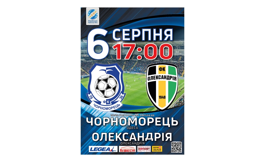 25-го июля начинается реализация билетов на матч 4-го тура чемпионата УПЛ между «Черноморцем» и ФК «Александрия», который состоится в Одессе 6-го августа (начало в 17:00).