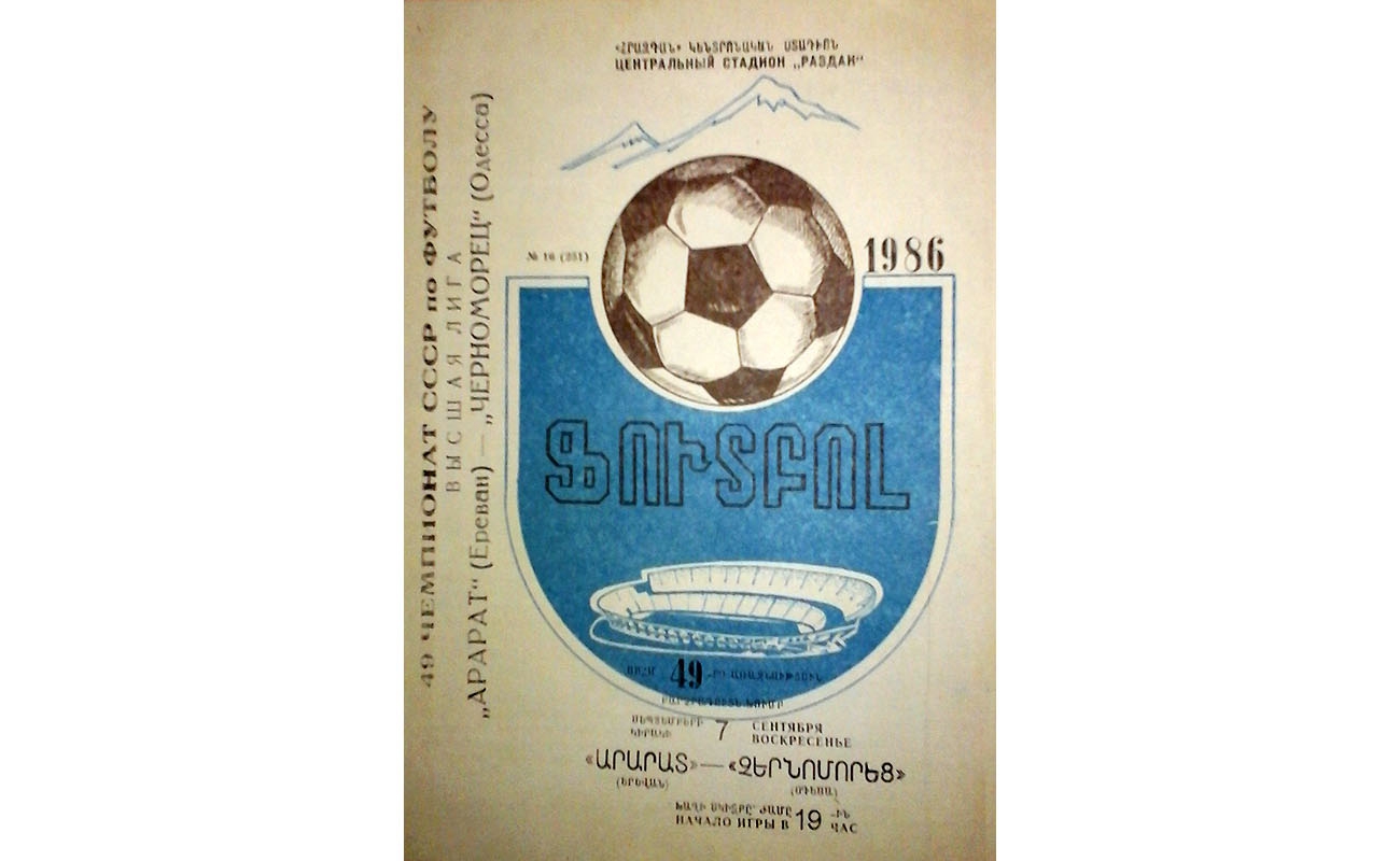 1986 год — «Арарат» Ереван — «Черноморец» — 1:1 (0:0). Чемпионат СССР. Ереван. Центральный стадион «Раздан». Голы: А. Багапов (71) — Р. Кочарян (79). Не реализовал пенальти Раф. Галустян («Арарат», 15, парирован В. Гришко).