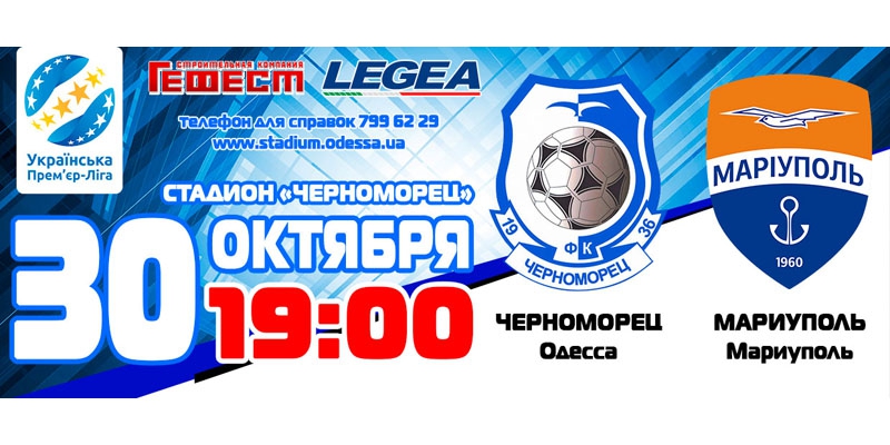 Сегодня началась реализация билетов на матч 14-го тура чемпионата УПЛ между командами ФК «Черноморец» (Одесса) и ФК «Мариуполь», который состоится 30-го октября (начало в 19:00).