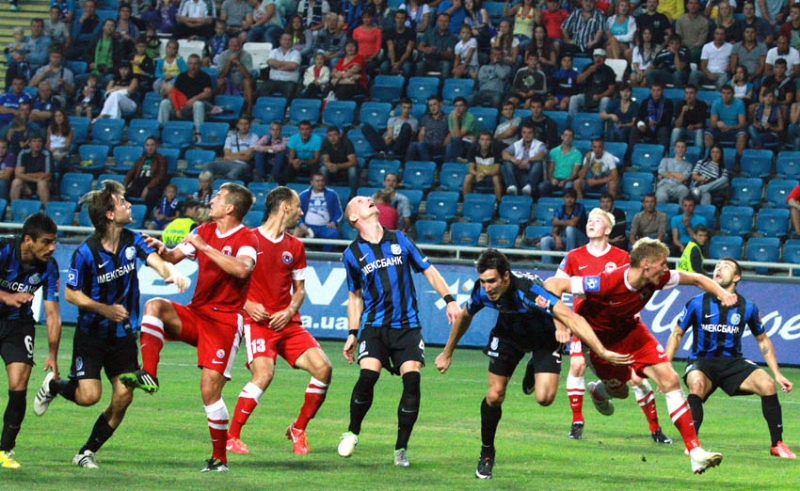 На фото: эпизод матча 1 сентября 2013 года "Черноморец" - "Ильичевец" (Мариуполь) - 1:0.