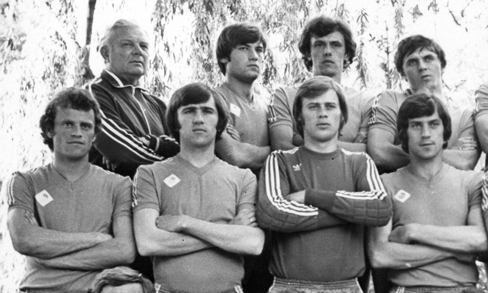 1953 год — Вячеслав Владимирович ГОЛОВИН (на фото – второй слева в первом ряду), защитник. Играл в «Черноморце» с 1978 по 1981 гг. (116 матчей, 2 гола).