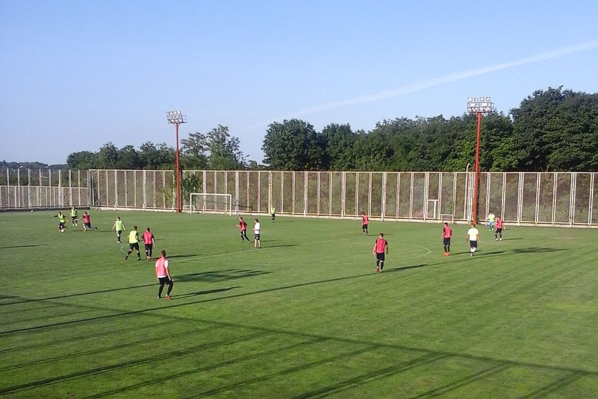 С понедельника «моряки» работают на своей тренировочной базе в Совиньоне. Ежедневно проводятся по два занятия. Сегодня во время вечерней тренировки прошла двухсторонняя игра. Главный тренер «Черноморца» Ангел Червенков использовал в поединке около 30 футболистов, среди которых были как игроки, уже не первый год защищающие цвета нашего клуба, так и приличное количество потенциальных новичков. Матч завершился победой (2:1) команды, выступавшей в красных манишках (отличились Артем Ярмоленко и Андрей Штогрин). У «желтых» гол забил Олег Соколов.