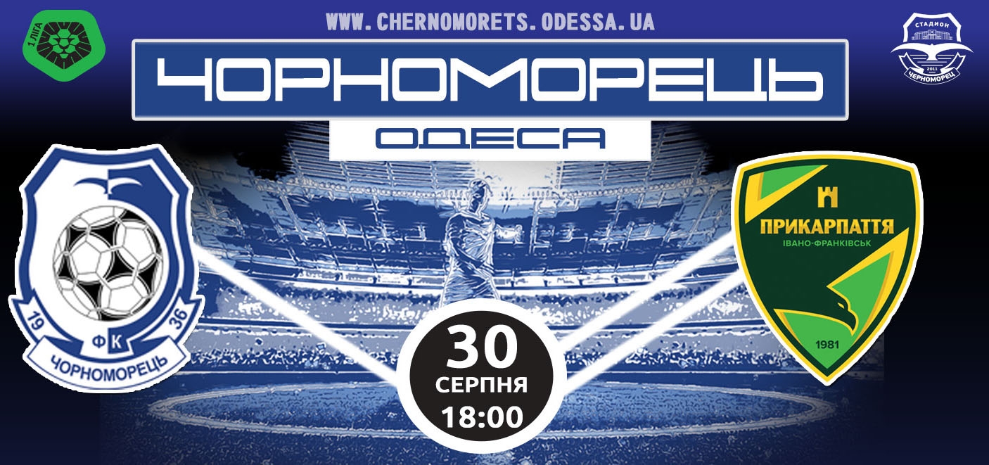 Стартовала реализация билетов на матч 6-го тура Чемпионата ПФЛ «Первая Лига» между командами ФК «Черноморец» (Одесса) и ФК «Прикарпатье» (Ивано-Франковск), который состоится 30-го августа 2019 года (начало в 18:00).