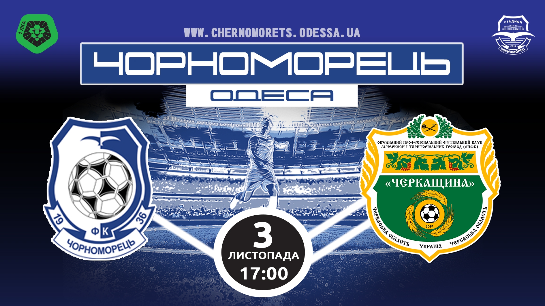 Сегодня стартовала реализация билетов на матч 16-го тура Чемпионата ПФЛ «Первая Лига» между командами ФК «Черноморец» (Одесса) и ОПФК «Черкащина» (Черкассы), который состоится 3-го ноября (начало в 17:00).