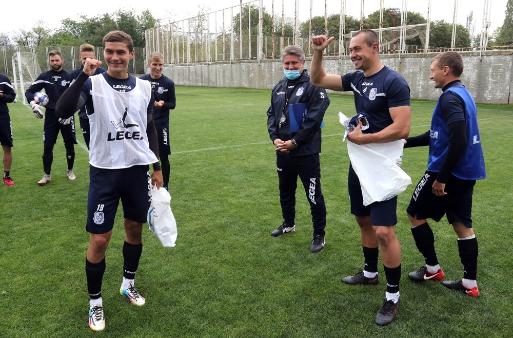Команда «моряков» продолжает тренировки на своей базе в Совиньоне. Перед сегодняшним занятием футболисты, тренеры и персонал тепло поздравили с 20-летием Вячеслава Велева и Константина Граматика.