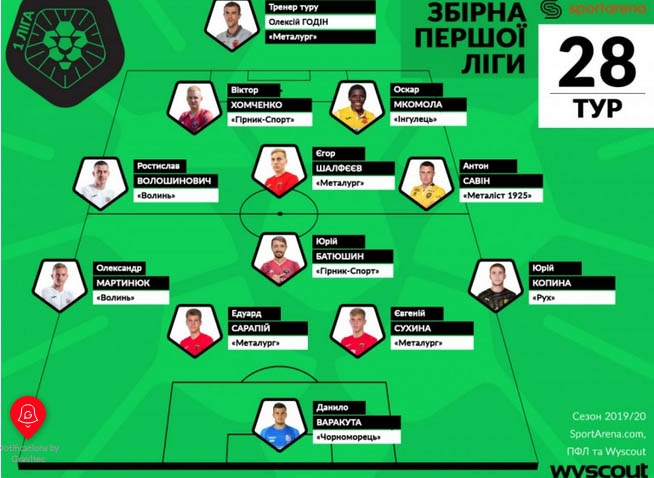 SportArena в сотрудничестве с компанией Wyscout назвала символическую сборную 28 тура первой лиги. Лучшим вратарем признан голкипер «Черноморца» Даниил ВАРАКУТА, который в своем дебютном матче против «Металлиста-1925» (0:0) сохранил ворота нашей команды в неприкосновенности.