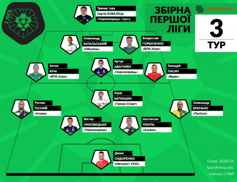 В символическую сборную третьего тура первой лиги, которую составляет СпортАрена, вошли два представителя «Черноморца»: защитник Виктор ЛИХОВИДЬКО и хавбек Артур АВАГИМЯН. Напомним, что лучшим тренером этого тура признан наставник нашей команды Сергей КОВАЛЕЦ.