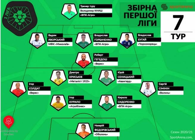 SportArena определила лучших футболистов 7 тура чемпионата Украины среди команд первой лиги. В символическую сборную вошел нападающий «Черноморца» Владислав БУГАЙ, а джокером признан Артем КОВБАСА, который удостаивается этого титула второй тур подряд.
