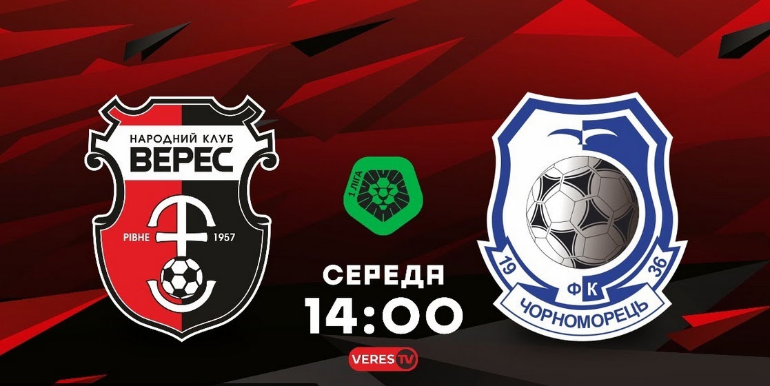 Сегодня во Львове на стадионе СКИФ пройдет матч 19 тура чемпионата Украины (первая лига) «Верес» (Ровно) – «Черноморец». Игру можно будет увидеть в прямом эфире на странице YouTube VERES TV. Начало матча в 14-00.
