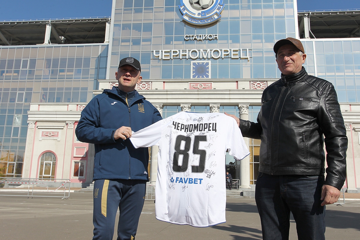В субботу на Аллее футбольной славы стадиона «Черноморец» прошла церемония награждения призеров конкурса знатоков истории команды «моряков». Викторина была приурочена к 85-летнему юбилею нашего клуба. Вручал призы генеральный директор ФК «Черноморец» Анатолий Мисюра.