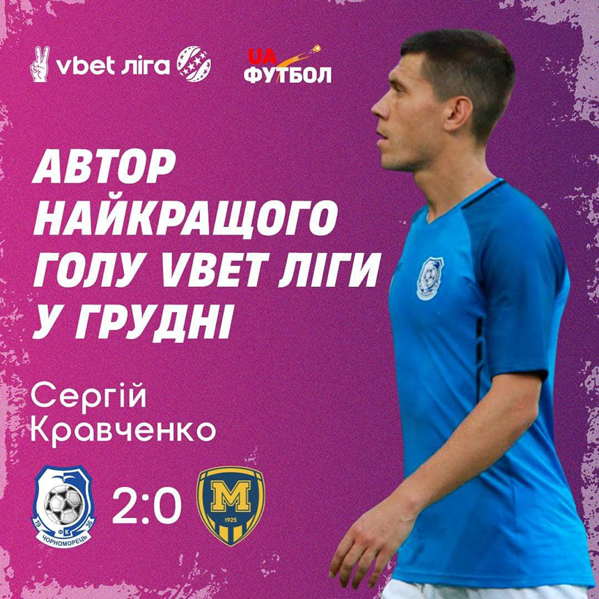 Титульный спонсор Украинской Премьер-лиги компания VBET совместно с UA-Футбол провели голосование для определения лучшего гола ноября и декабря, забитого в матчах чемпионата и Кубка Украины. По мнению читателей лауреатом стал мяч, который провел капитан «Черноморца» Сергей КРАВЧЕНКО в матче с «Металлистом 1925» (Харьков), завершившимся победой «моряков» 2:1.