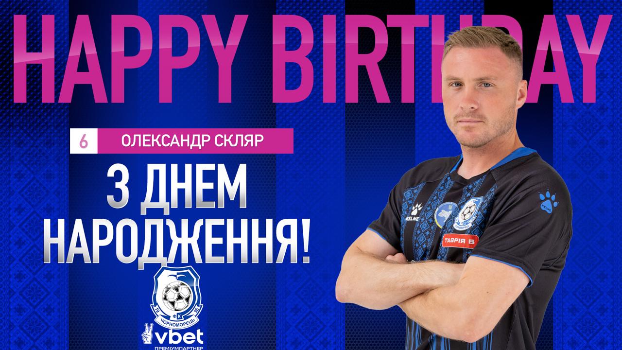 Колектив ФК «Чорноморець» вітає з днем народження Олександра СКЛЯРА, якому сьогодні виповнюється 35 років. Бажаємо футболісту міцного здоров’я, удачі, яскравих матчів!