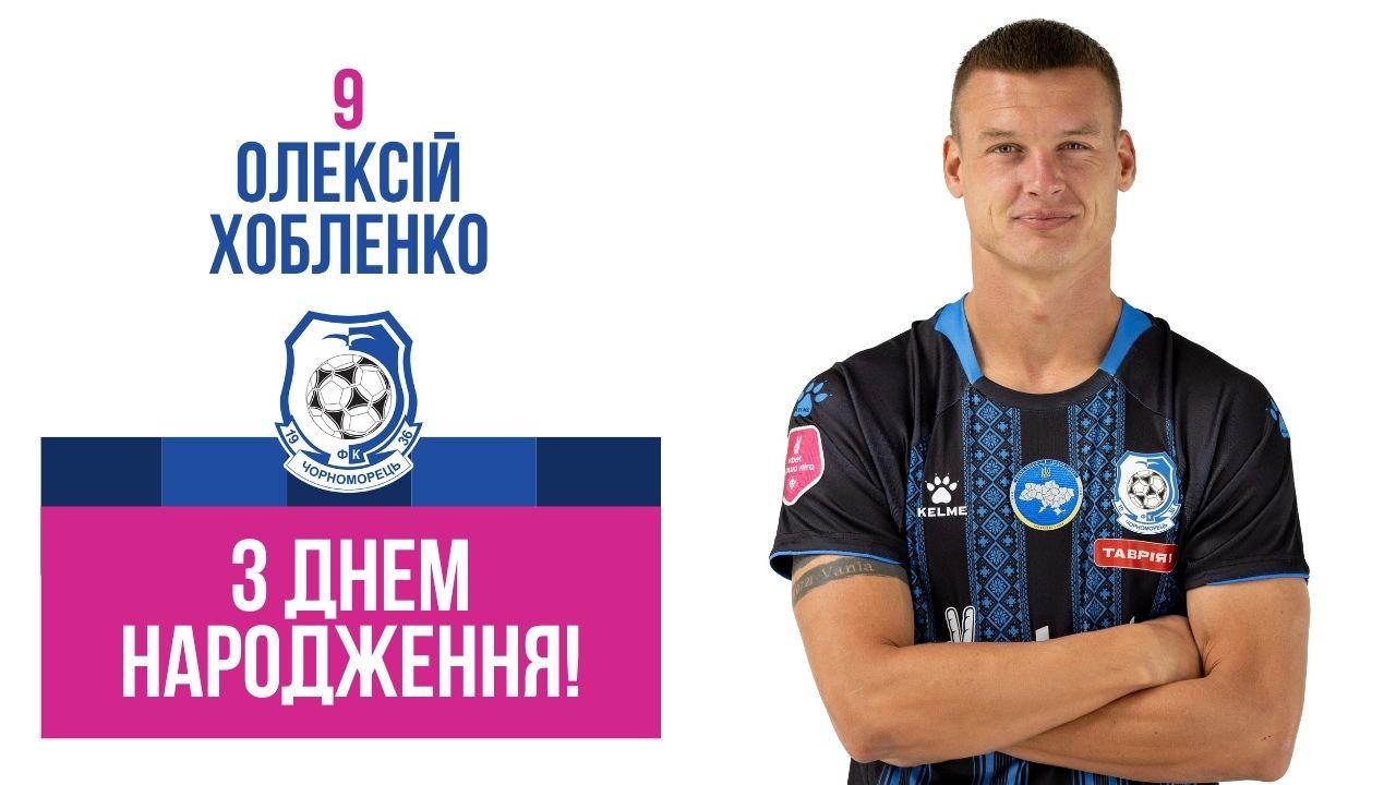 Сьогодні капітану «Чорноморця» Олексію ХОБЛЕНКУ виповнюється 32 роки. Наш клуб вітає форварда з днем народження, бажаємо здоров’я, виключно позитивних емоцій, яскравих матчів, благополуччя!
