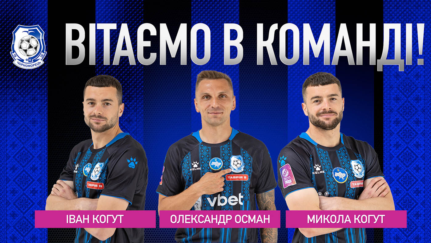 До "Чорноморця" приєдналися нові виконавці: півзахисники брати-близнюки Іван та Микола КОГУТИ і лівий захисник Олександр ОСМАН.