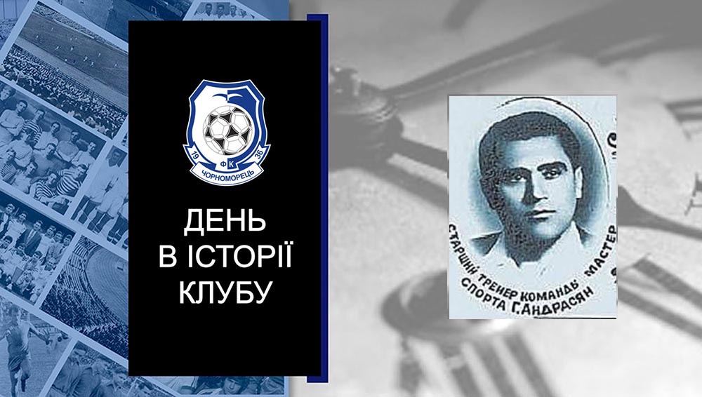 1914 рік - Гайк Аршакович АНДРІАСЯН (АНДРІАСОВ) (фото 1), тренер. Був старшим тренером «Чорноморця» («Харчовика») з червня 1955 року по жовтень 1956 року. Народився у Баку. Виступав у нападі команд: "Динамо" Баку, "Локомотив" Баку, "Динамо" Нальчик, "Локомотив" Москва, "Спартак" ("Динамо") Єреван. Тренував "Арарат" Єреван, "Ширак" Ленінакан, "Локомотив" Вінниця, "Лернагорц" Кафан, "Севан" Октемберян. Заслужений тренер Вірменської РСР (1962). Помер 4 березня 1971 року у Єревані.