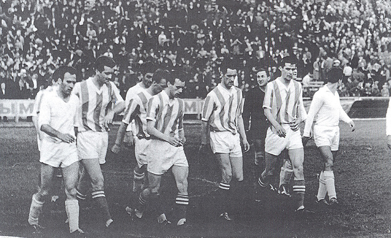 1950 рік - "Динамо" Алма-Ата - "Харчовик" Одеса - 1:1 (1:1). Чемпіонат СРСР. Алма-Ата. Стадіон "Динамо". Голи: В. Твердохлєбов (10) – Г. Петров (45).