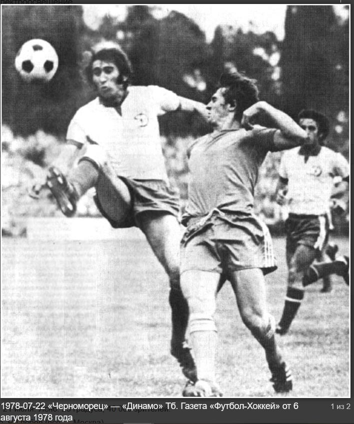 1978 рік - "Чорноморець" - "Динамо" Тбілісі - 0:1 (0:1). Чемпіонат СРСР. Одеса. Центральний стадіон ЧМП. Гол: В. Дараселія (40).