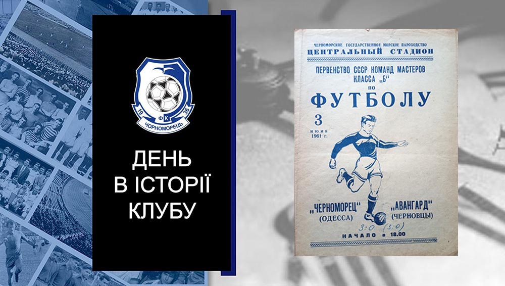 1961 рік - "Чорноморець" - "Авангард" Чернівці - 3:0 (3:0). Чемпіонат СРСР. Одеса. Центральний стадіон ЧДМП. Голи: К. Фурс (17), М. Молочков-2.