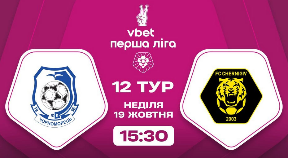 19 жовтня в Одесі відбудеться матч 12 туру чемпіонату VBET Перша ліга. «Чорноморець» буде приймати ФК «Чернігів». Початок гри о 15-30. Квитки можна придбати тут. Трансляція - YouTube канал ПФЛ.