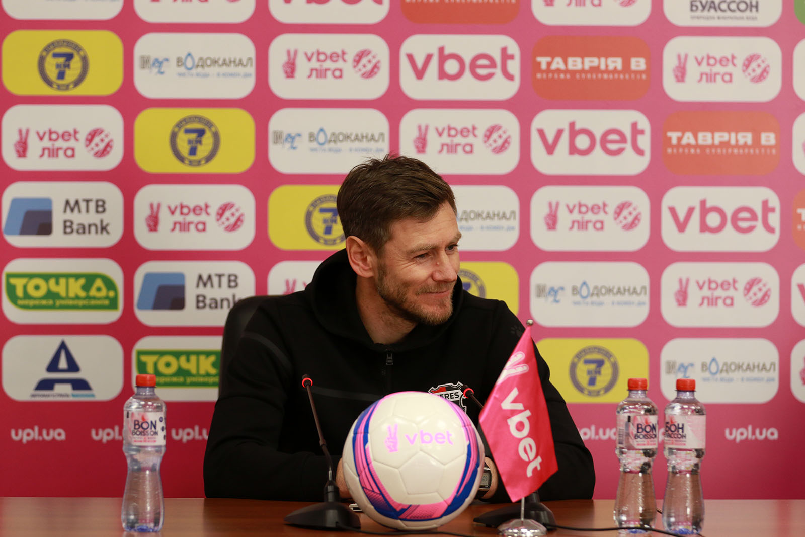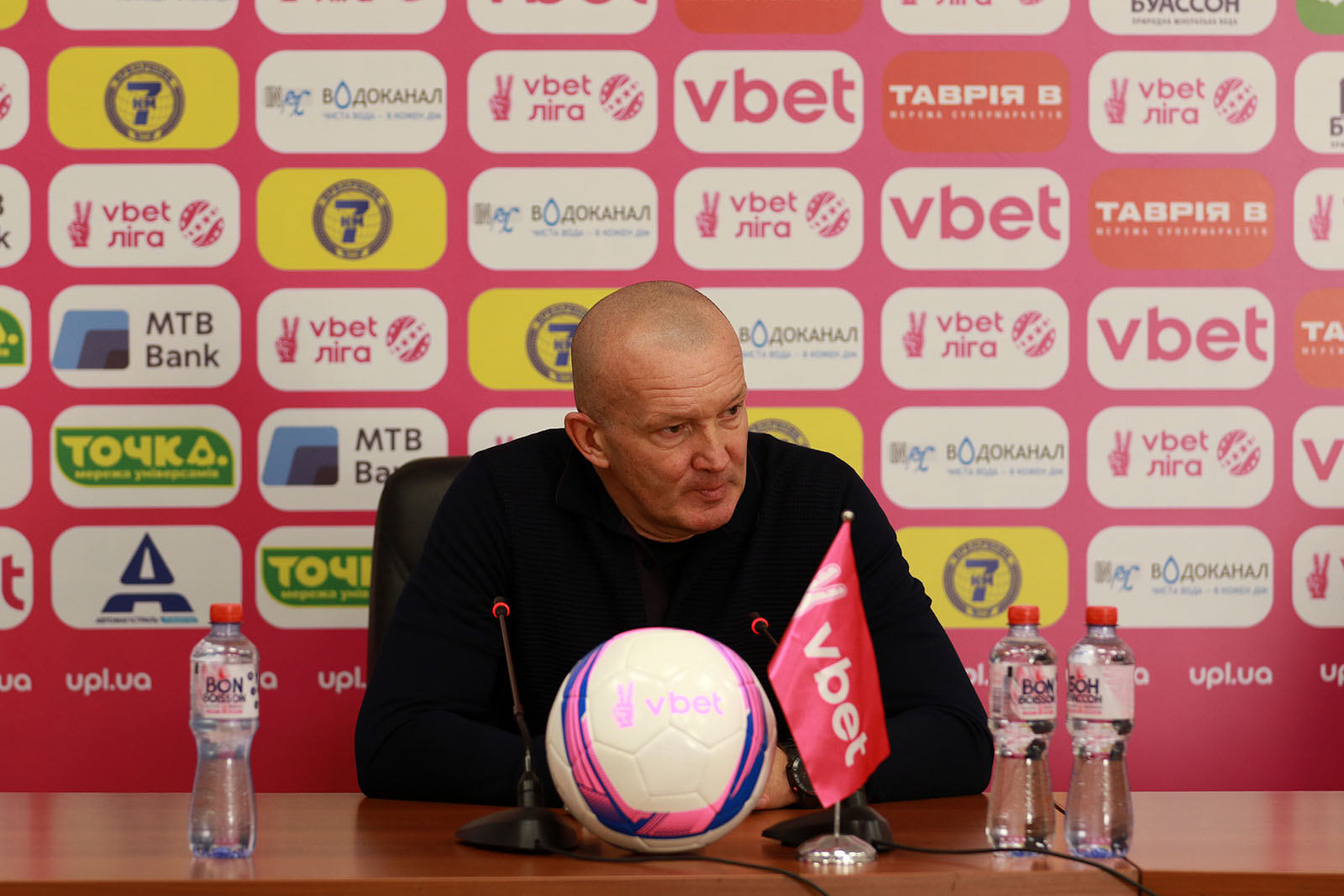Прес-конференція головних тренерів команд: Олега Шандрука («Верес») та Романа Григорчука («Чорноморець»).