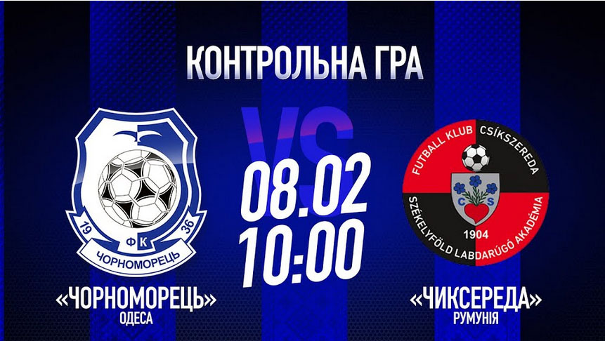 Перший з двох запланованих на 8 лютого тренувальних матчів «Чорноморець» проведе з румунським клубом "Чиксереда" (М'єркуря-Чук). Пряма трансляція гри на офіційному YouTube каналі ФК «Чорноморець». Початок о 10-00.