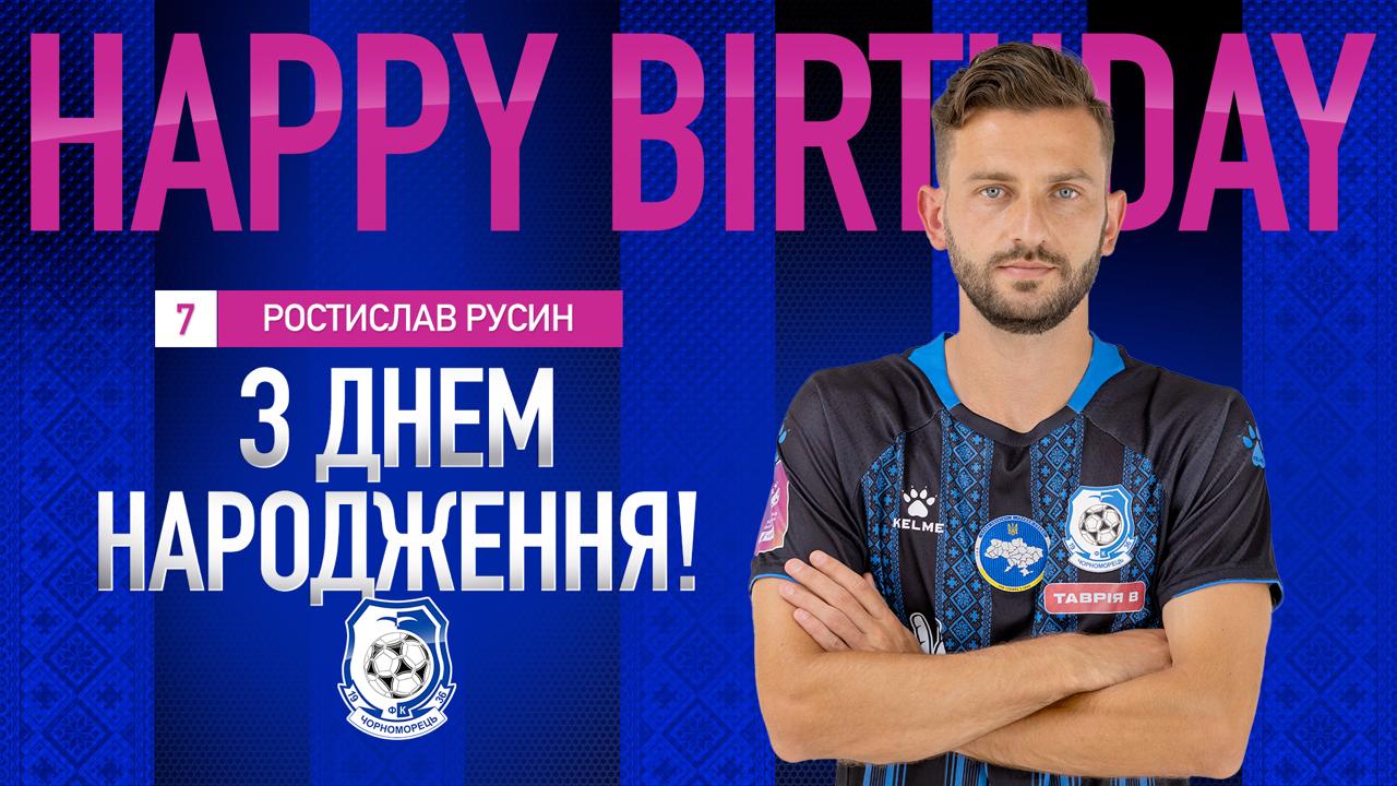 Колектив ФК «Чорноморець» вітає з днем народження футболіста команди «моряків» Ростислава РУСИНА, якому сьогодні виповнюється 30 років. Бажаємо ювіляру міцного здоров’я, удачі, яскравих та переможних матчів у складі «Чорноморця»!