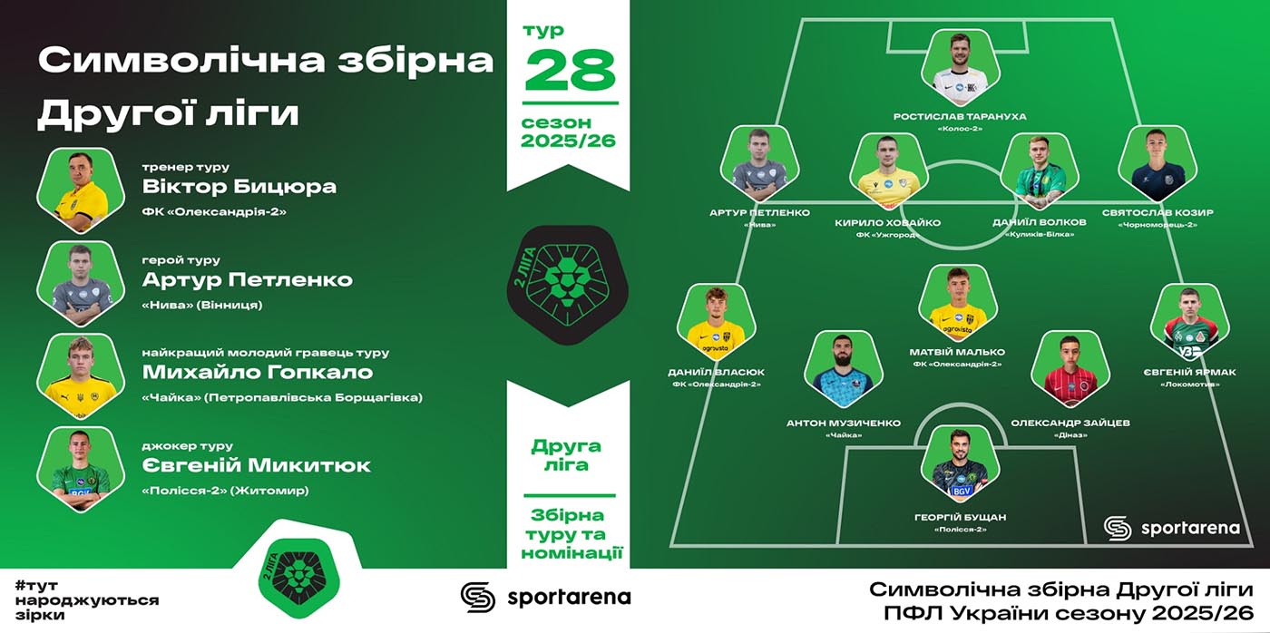 Футболіст «Чорноморця-2» Святослав КОЗИР визнаний медіа-партнером ПФЛ України виданням «SportArena» кращим правим півзахисником 28 туру другої ліги.