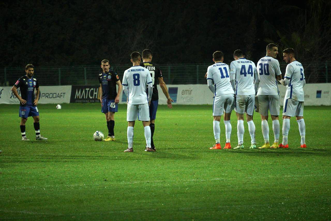 Приблизно з 30 хвилин косовські футболісти активізувалися в атаці: подали три кутові поспіль, по-справжньому вступив у гру Непогодов, відбивши удар суперника з чотирьох метрів у ближній кут. Невдовзі успіх посміхнувся ФК «Малішево»: їхній футболіст із центру штрафного майданчика «пробив» нашого голкіпера – 0:1. Перед перервою Брагару заробив пенальті, з «крапки» вдарил Путря, але м'яч пролетів над поперечиною.