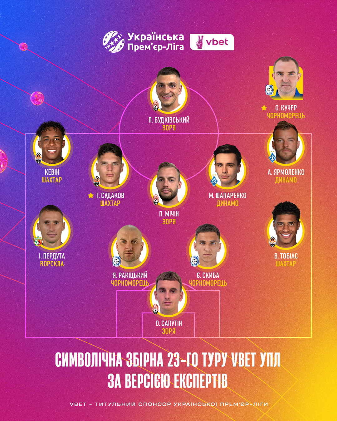 Українська Прем’єр-Ліга склала символічну збірну 23-го туру Чемпіонату УПЛ, а також назвала найкращого гравця та найкращого тренера 23-го туру. Традиційно це було зроблено разом з ведучими, експертами, коментаторами УПЛ ТБ та представниками провідних спортивних ЗМІ України. Цього разу їх було 36.