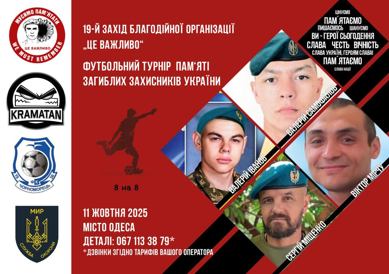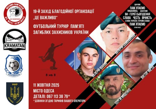 В ігровому залі НТБ «Чорноморець» у Совіньйоні відбувся традиційний захід благодійної організації «Це важливо». Спільно з ФК «Чорноморець» було проведено турнір з міні-футболу, присвячений вшануванню пам'яті загиблих захисників - морських піхотинців 137-го окремого батальйону морської піхоти: Валерія ІВАНОВА, Віктора МІРЧУ, Сергія МІЩЕНКА, Валерія САМОФАЛОВА.