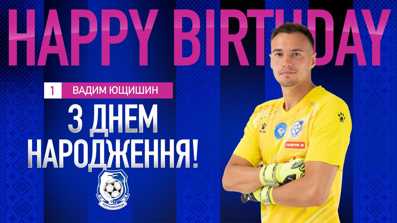 Колектив ФК «Чорноморець» вітає з днем народження Вадима ЮЩИШИНА, якому сьогодні виповнюється 26 років. Бажаємо нашому голкіперу здоров’я, яскравих матчів, великих перемог, незмінної удачі!
