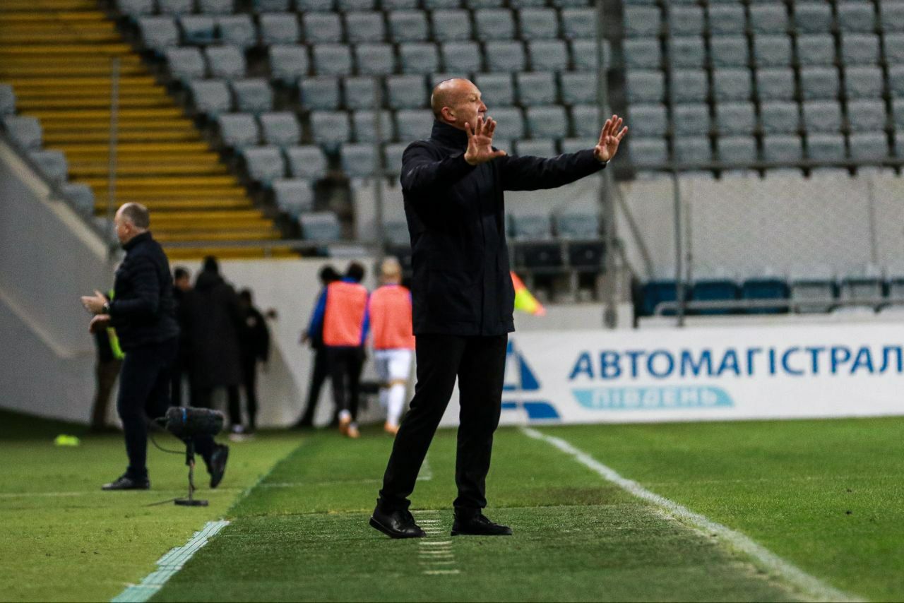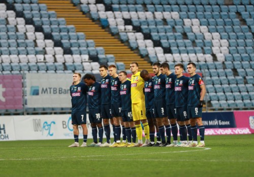 Через повітряну тривогу початок матчу змістився на 38 хвилин. Перший тайм пройшов у виснажливій позиційній боротьбі. Ударів по цілі було дуже мало, як і роботи в голкіперів. Двічі м'яч дійшов до Варакути і обидва рази наш сторож воріт зіграв надійно: на 2 хвилині взяв м'яч після «стандарту» з 20 метрів у виконанні Бойка, а на 39-й без проблем нейтралізував удар Пасіча з-за меж штрафного майданчика. Набагато небезпечніше було на 31 хвилині, коли Васильєв прийняв на себе постріл Калюжного з середньої дистанції. Найяскравіший момент біля протилежних воріт виник на 38 хвилині: Бадібанга отримав своєчасну передачу від Кузика, але пробив із 12 метрів поряд зі стійкою.