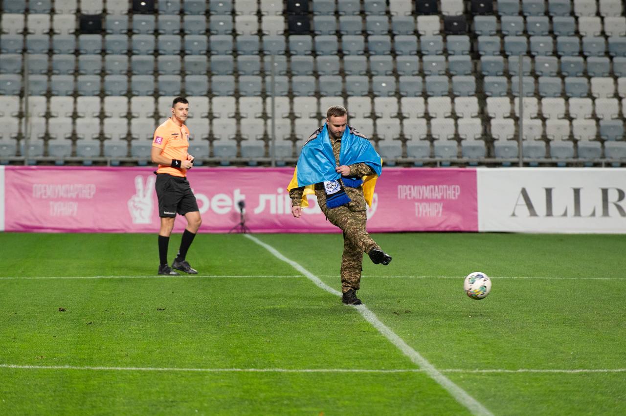 Символічний перший удар по м’ячу у сьогоднішньому матчі виконав майор ЦСП «Омега» Артем Завірюхін, вболівальник «Чорноморця», який під час повномаштабного вторгнення знищив багато живої сили ворога, отримав поранення і проходив тривалу реабілітацію.