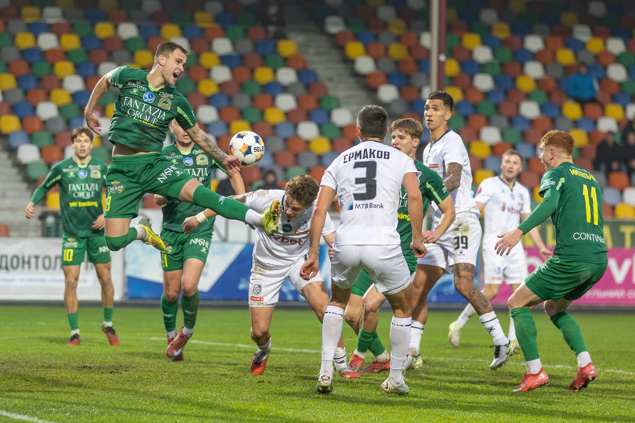 У першому таймі господарі тричі завершували свої атаки ударами. На 3 хвилині Давидов з 11 метрів пробив головою повз ціль, на 17-й Мисик приблизно з такої ж дистанції послав м'яч до рук Аніагбосо. На 32-й був найнебезпечніший момент: Напуда прорвався флангом у наш штрафний майданчик і «вистрілив» (голкіпер «моряків» парирував удар), а добивання Тлумака з лінії воротарського було неточним.