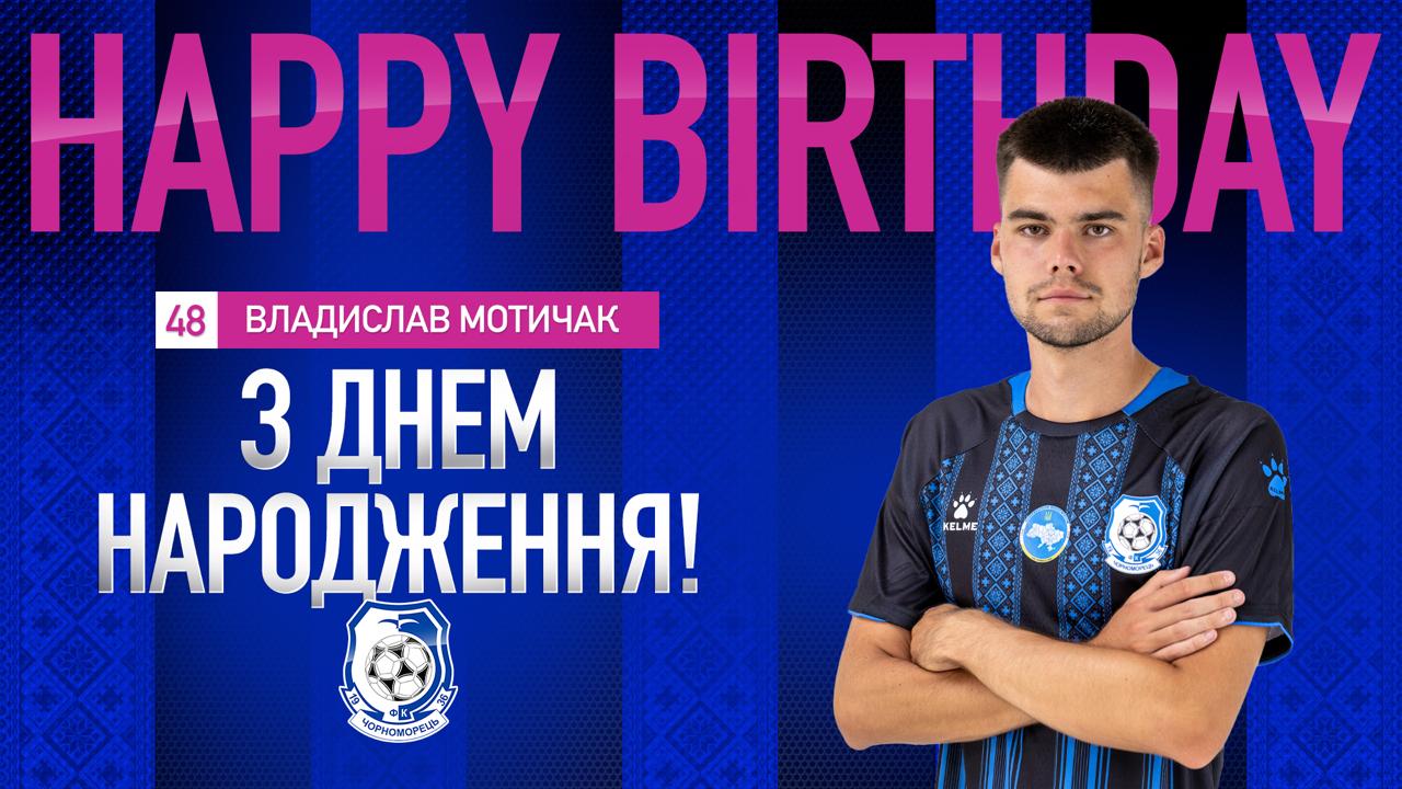 Сьогодні футболісту «Чорноморця» Владиславу МОТИЧАКУ виповнюється 23 роки. Колектив нашого клубу вітає «моряка» з днем народження та бажає йому здоров'я, зростання майстерності, удачі, благополуччя!