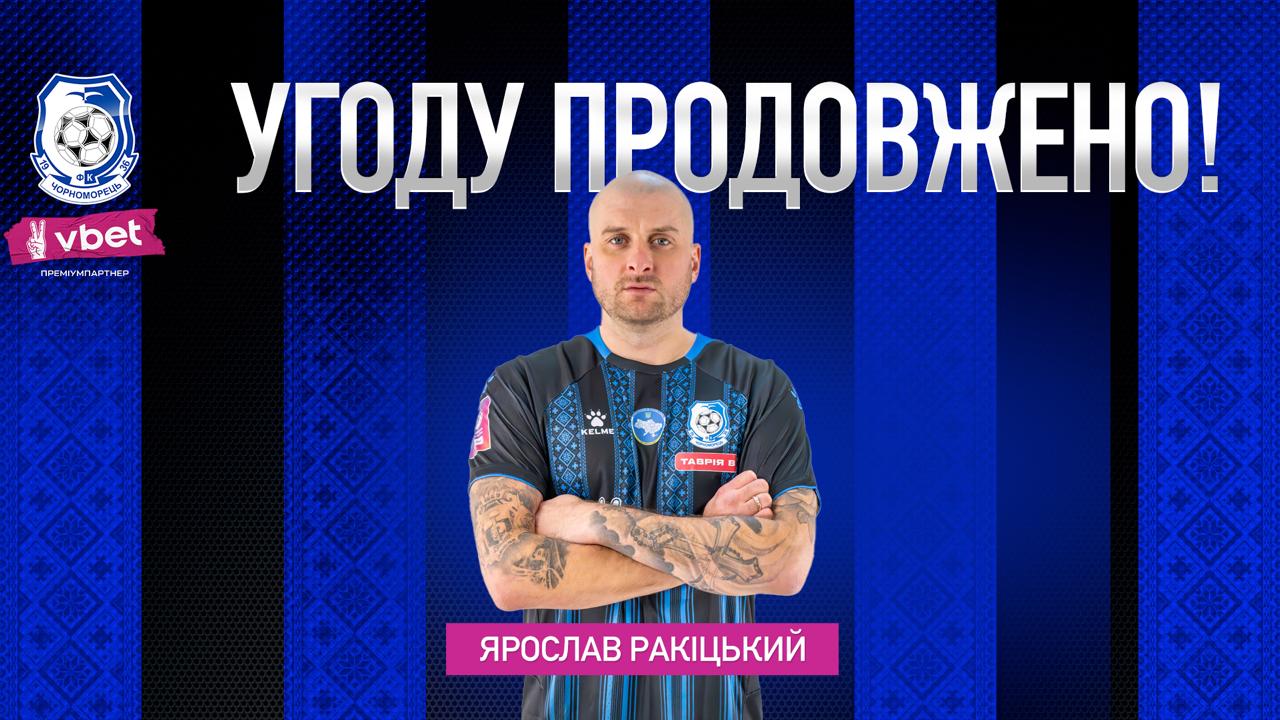 Сьогодні було продовжено угоду між ФК «Чорноморець» та захисником Ярославом РАКІЦЬКИМ, який розпочав виступи за команду «моряків» у березні поточного року і зіграв 9 офіційних матчів.