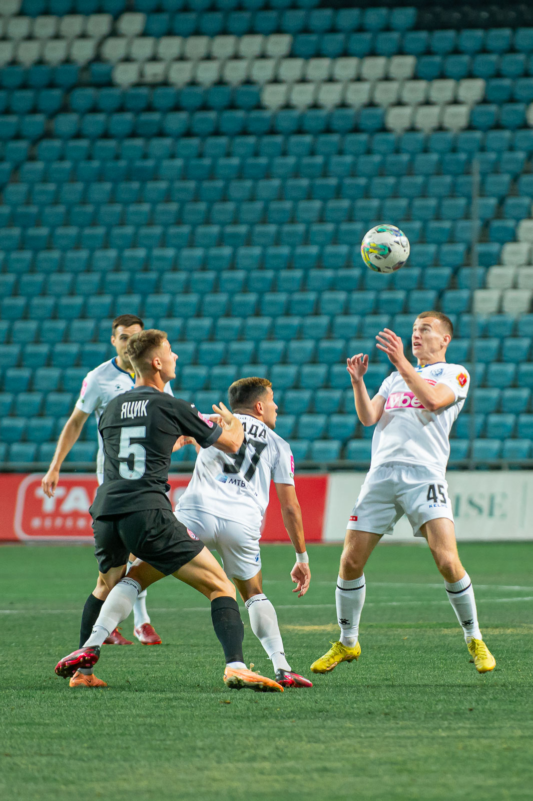 Команди розпочали матч без «розгойдування». Удари по воротах пішли з першої хвилини: Мишньов (поряд зі стійкою), Герреро (взяв Варакута), Вакула (парирував на кутовий Турбаєвський), Горбач (Варакута!), Ієде (головою після штрафного Вакули – в небезпечній близькості від воріт), Нагнойний (з 6 метрів вище перекладини), Дада (над хрестовиною). Дуже гострою була контратака гостей на 41 хвилині. Нагнойний виявився віч-на-віч із Варакутою, який виграв цю дуель. Завершили тайм два дальні «постріли» Брагару та Васильєва (обидва – вище воріт).