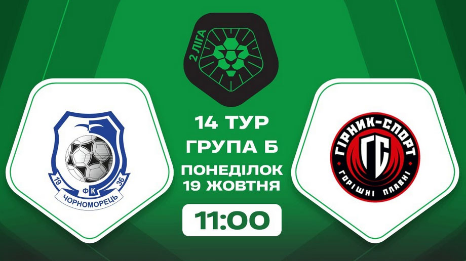 20 жовтня в Одесі відбудеться матч 14 туру чемпіонату України серед команд другої ліги (група «Б») «Чорноморець-2» – «Гірник-Спорт» (Горішні Плавні). Гра пройде на стадіоні НТБ «Чорноморець» у Совіньйоні. Початок об 11-00. Заплановано пряму відеотрансляцію матчу.