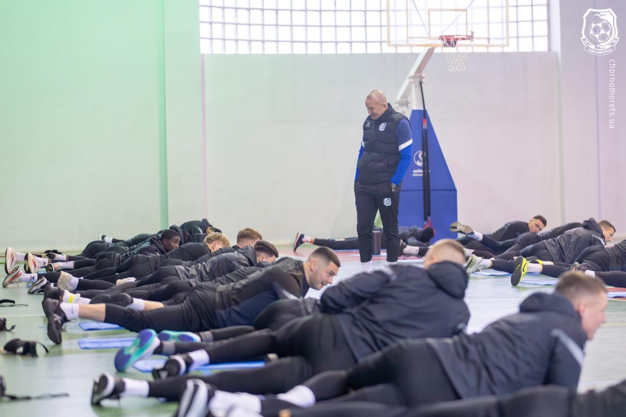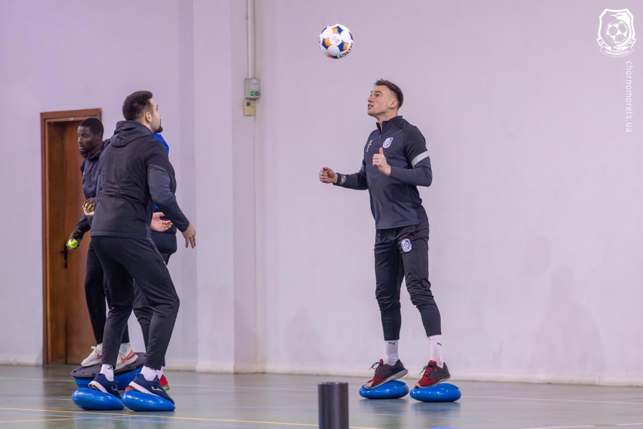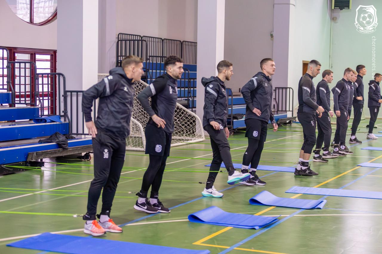 Сьогодні вранці «Чорноморець» зібрався на НТБ у Совіньойні та провів перше тренування у цьому році. Перед початком занять генеральний директор нашого клубу Валерій ДЄОРДІЄВ представив команді нового головного тренера Романа ГРИГОРЧУКА. «Моряки» тренувались у ігровому залі, а також на одному з футбольних полів бази.