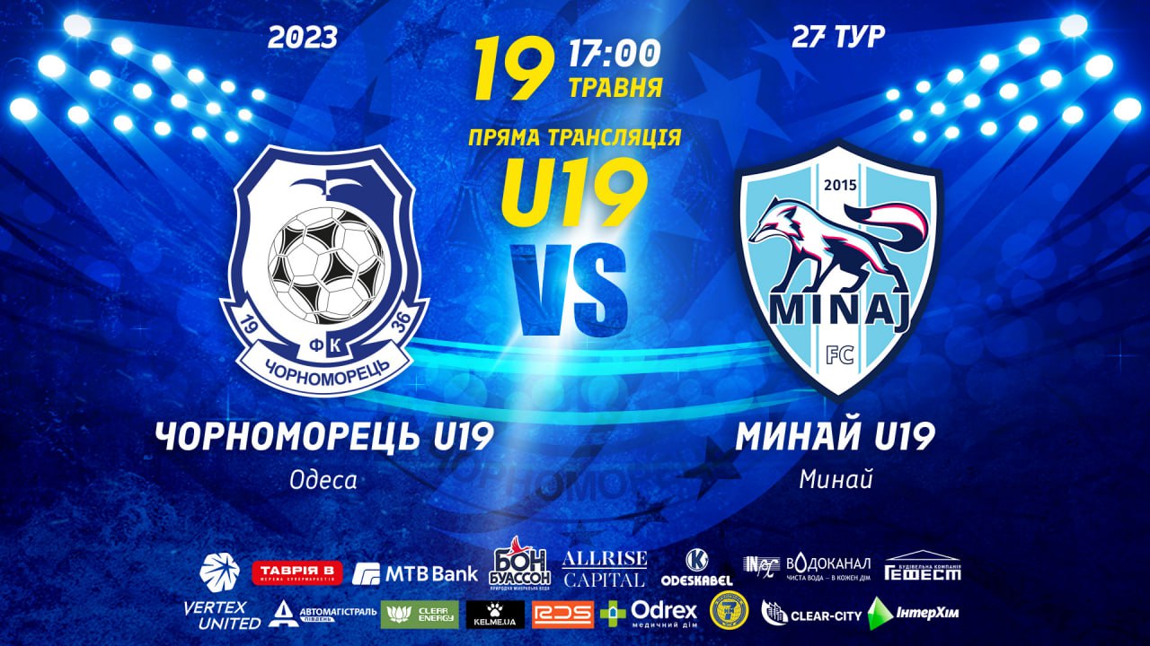 19 травня в Одесі на стадіоні НТБ нашого клубу у Совіньйоні відбудеться матч 27 туру чемпіонату юнацьких команд УПЛ. "Чорноморець" прийматиме ФК «Минай». Гра розпочнеться о 17-00 та пройде без глядачів. За її ходом можна буде стежити на на офіційному YouTube каналі CHОRNOMORETS TV.